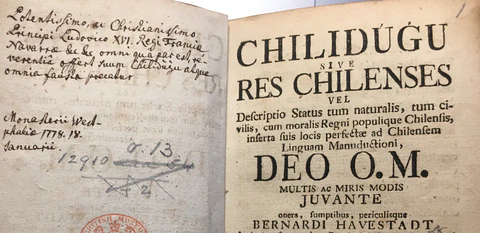 Cover page for Bavarian Jesuit Fr. Bernhard Havestad grammar of Mapudungun, 1777.